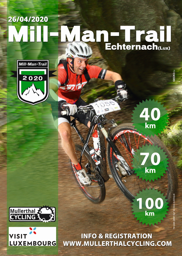 Op zondag 26 april start in het mooie Luxemburgse Echternach de Mill-Man-Trail. Een mountainbiketoertocht dwars door de Luxemburgse Ardennen. Rijders kunnen kiezen uit de afstanden 40, 70 en 100 km. Kortom, deze toch biedt uitdaging voor ieder niveau.
